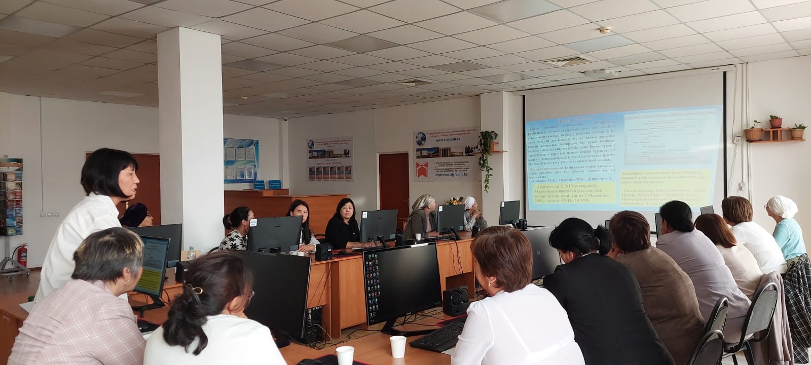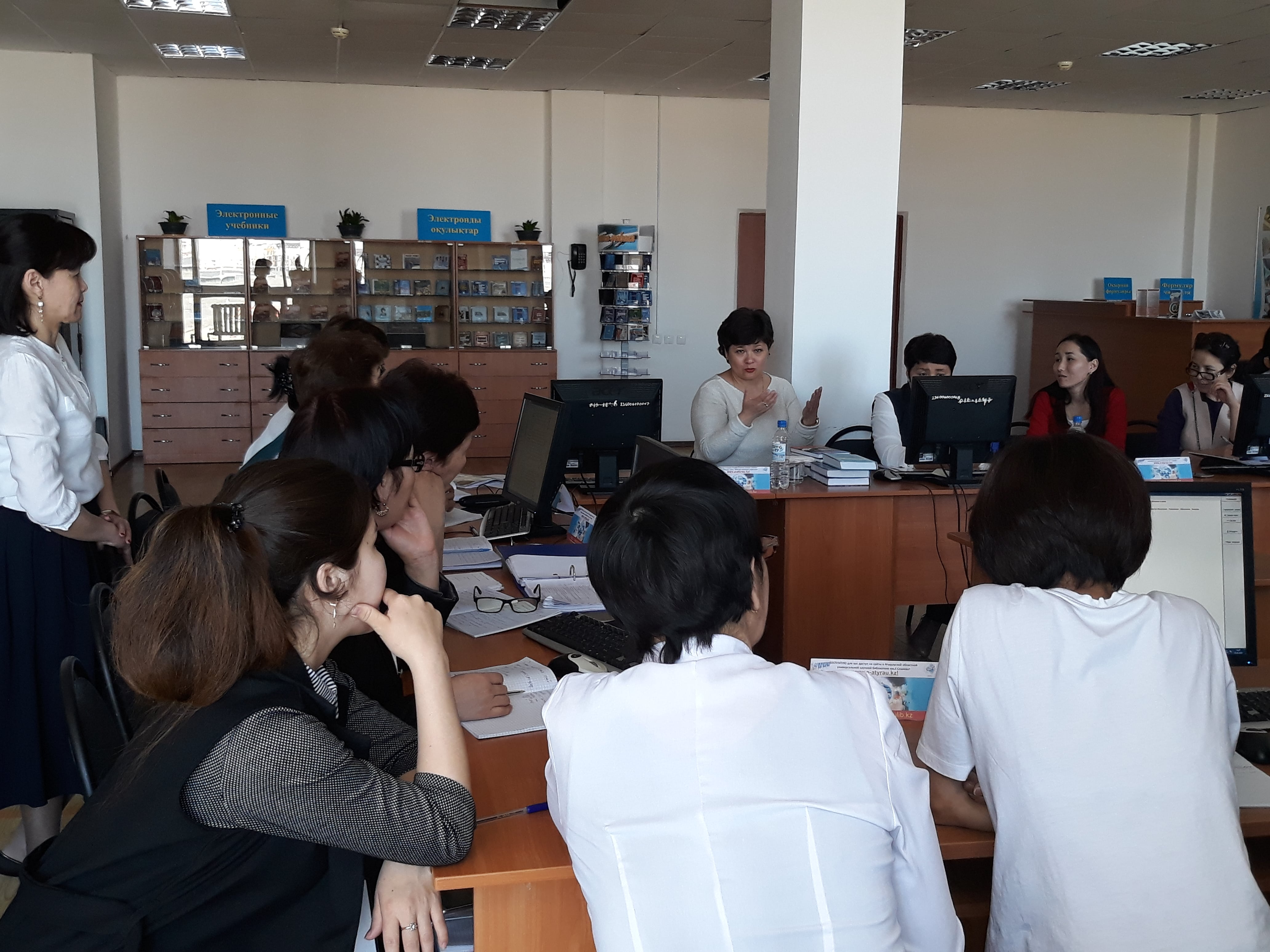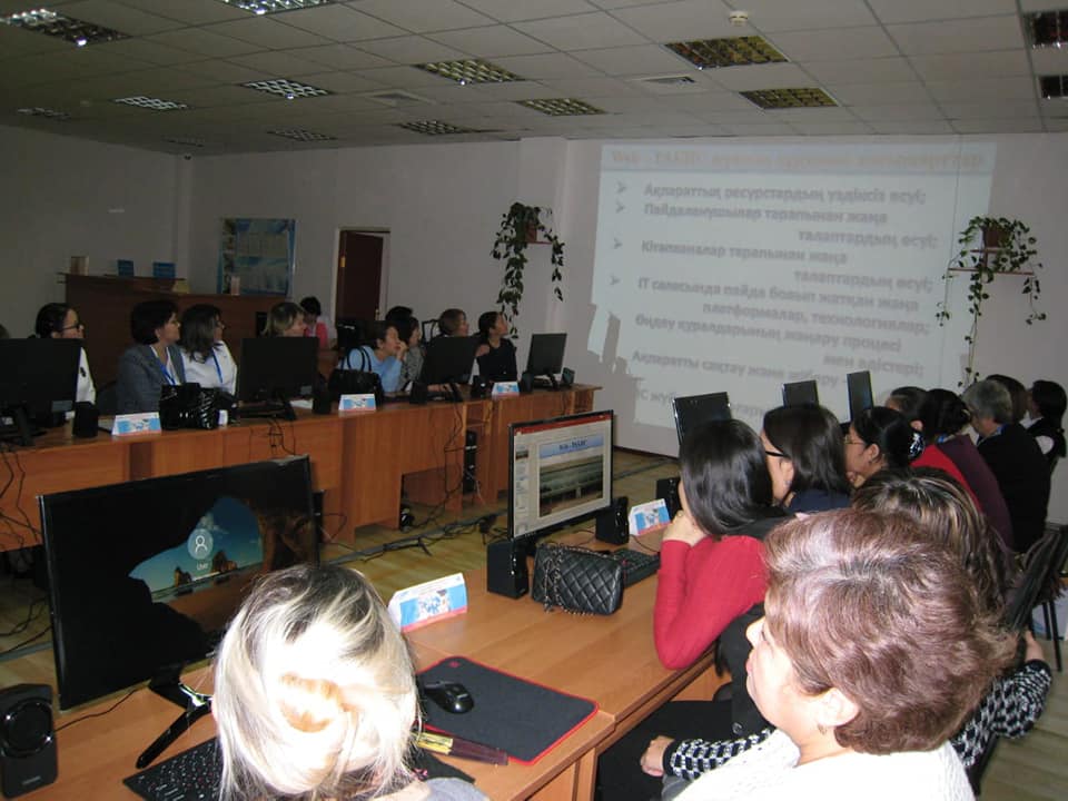 «WEB-RABIS» бағдарламасының каталогизатор модулімен жұмыс», «Каталогизатор ГОСТ 7.1 – 2003 стандартымен жұмыс», «Электронды және цифрлық кітапхана» (Ғ.Сланов атындағы Атырау ОҒӘК базасында) тақырыптарында оқу-тренинг