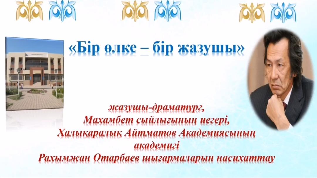 Ғ.Сланов атындағы Атырау облыстық ғылыми әмбебап кітапханасы «Бір өлке – бір жазушы» акциясы аясында жазушы-драматург Р.Отарбаевтың шығармаларын насихаттау мақсатымен бейнетаспаны оқырмандар назарларыңа ұсынды. Онда жазушының кітаптарымен қоса драмалық шығармалары: «Бас», «Нашақор жайлы новелла», «Бейбарыс Сұлтан» пьесасынан үзінді ұсынылды.