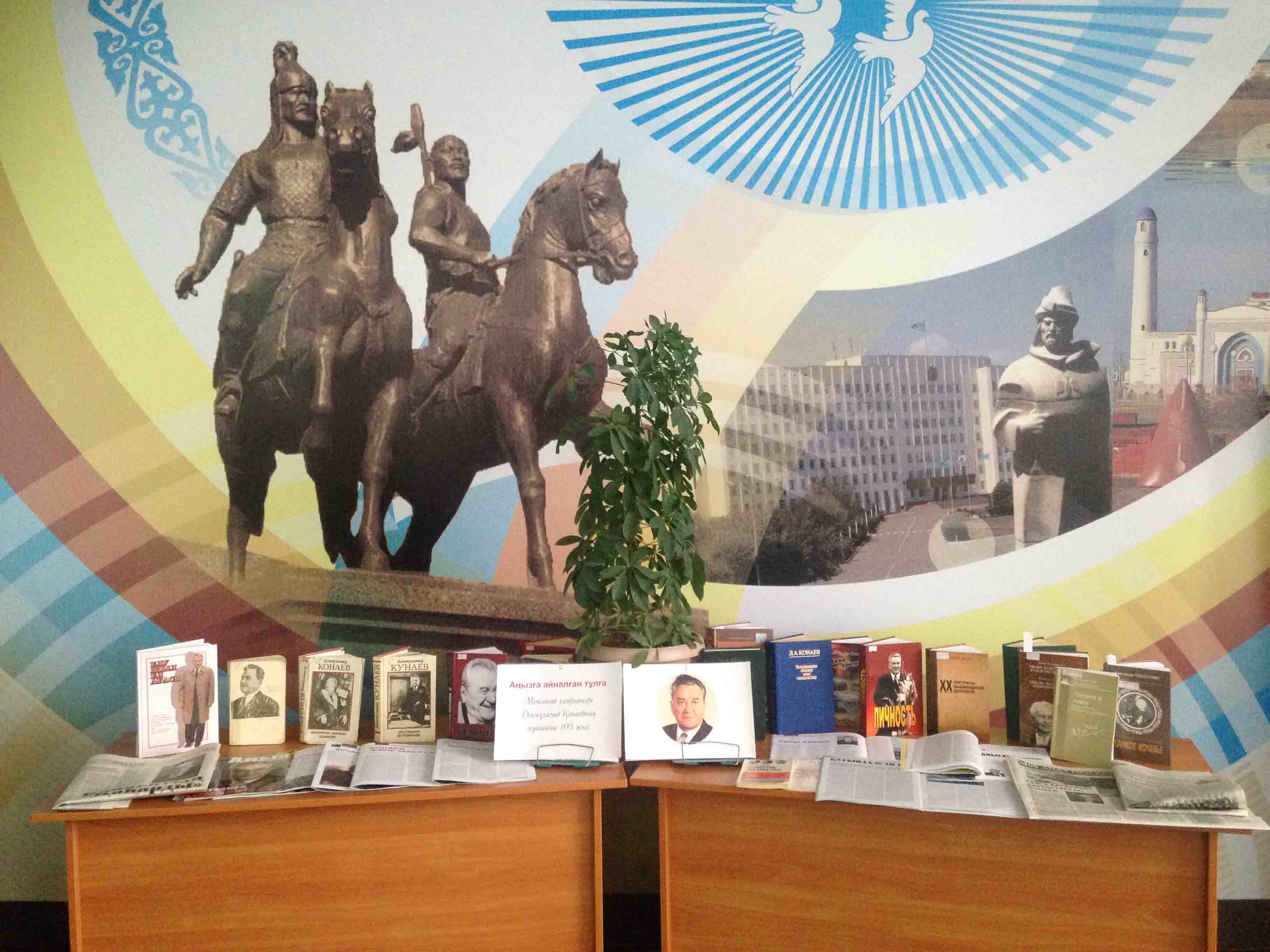 В Областной универсальной научной библиотеке имени Г.Сланова проведен информационный час по книжной выставке на тему: «Аңызға айналған тұлға», посвященная к 105 летию легендарного сына казахского народа, видного государственного деятеля, трехкратного Героя Социалистического труда, знаменитого представителя ХХ века Д.А.Кунаева. К вниманию читателей были предоставлены книги описывающие о жизни и о деятельности Динмухамеда Конаева кгиги «Ақиқаттан аттауға болмайды» (1994), «Өтті дәурен осылай» (1992), «Таңдамалы сөздер мен мақалалар» (1978) , «Елу жыл ел ағасы» (2002), І.Есенберлина «Ойлар, баяндамалар, күнделіктер, хаттар» (2015), В.Владимирова «Собрание сочинений в пяти томах Т.4» (2012), Р.Ниязбека «Кемеңгер» (2011) и другие.