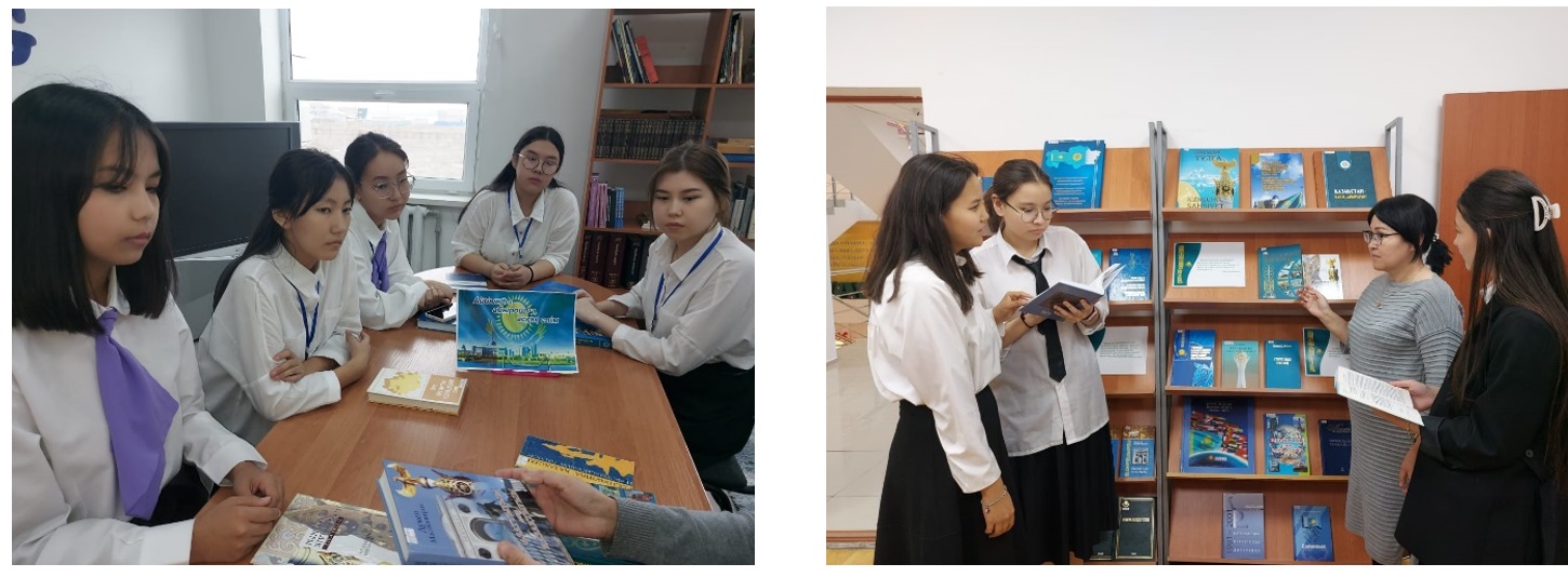 Кітапханашы оқырмандарды кітап көрмесімен таныстыру барысында, мерекенің қаншалықты маңызды екендігін, Республика күнінің Ұлттық мереке болғанына жастардың көзқарасы қандай екендігін талқылау арқылы әдебиеттерге шолу жасады. Тәуелсіздігіміздің тұғырының берік болуының символы Республика күніне арналған тарихи кітаптар мен оқиғалар желісін баяндайтын басылымдар кітапхананың оқырмандары мен мектеп оқушыларына таныстырылды.