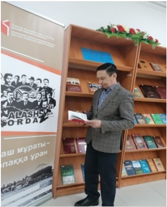 На выставке занимали место книги охватывающие о миссии и о деятельности Алашординцев, духовные и поучительные наследии членов партии Алаш, как Миржакып Дулатова, Алихан Букейханова, Ахмет Байтурсынова, Алимхан Ермекова и другие. В ходе ознакомления с книжной выставкой библиотекарь проинформировала читателей, наша страна будет изучать наследии Ахмета Байтурсынова, по направлениям: «Научные наследие А.Байтурсынова», «Литературные произведения А.Байтурсынова», «Крылатые слова и выражения А.Байтурсынова», «Ахметоведение в современной науке» в рамках ежегодной акции «Одна страна – одна книга-2022».