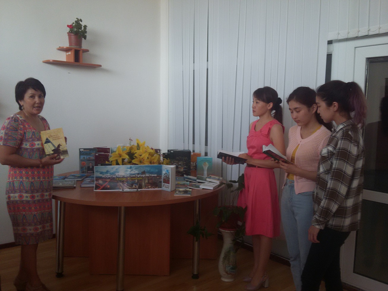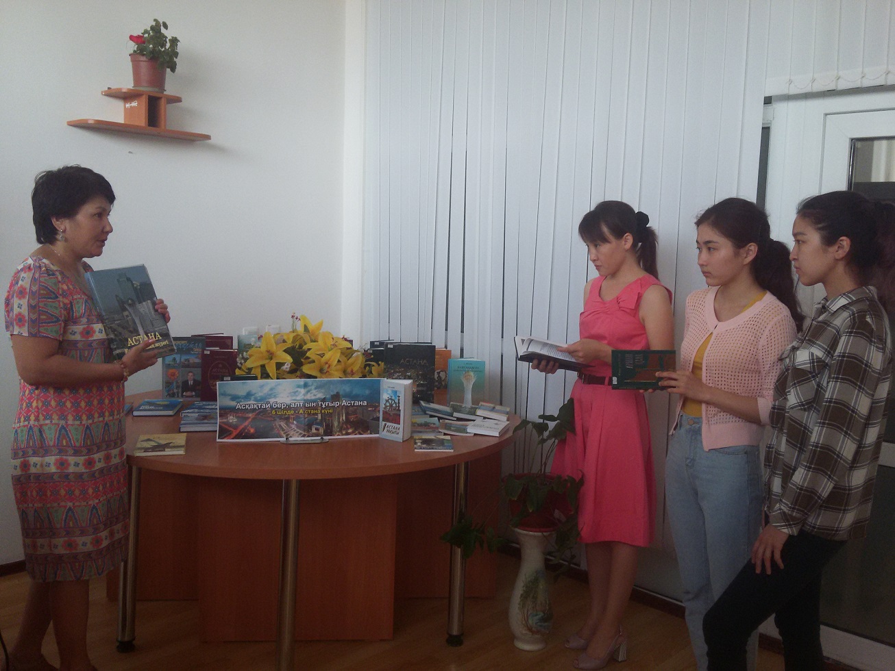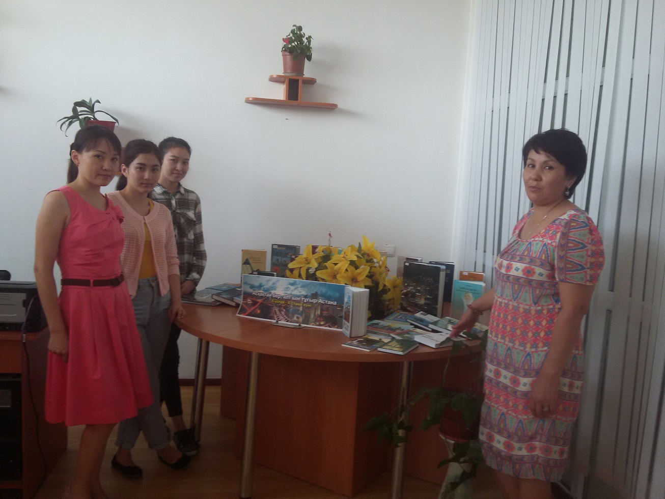 В областной универсальной научной библиотеке имени Г.Сланова оформлена книжная выставка на тему: «Асқақтай бер, алтын тұғыр Астана», посвященная к дню Астаны, также проведен информационный час по данной тематике.