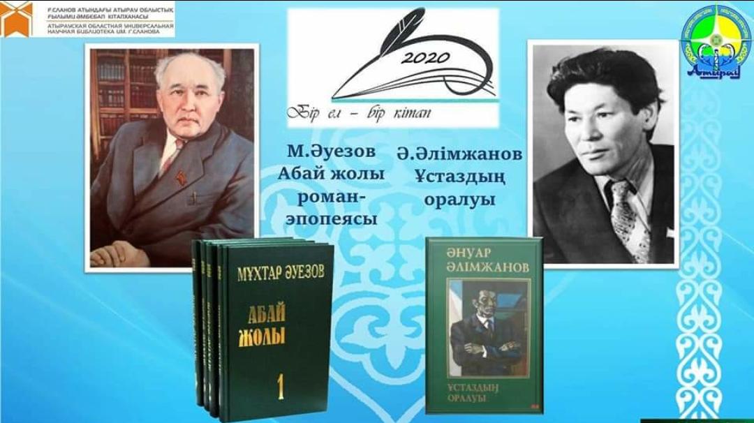 Ғ.Сланов атындағы облыстық ғылыми әмбебап кітапханасында «Бір ел-бір кітап-2020» акциясын насихаттау мақсатында «Бәріміз бірігіп оқимыз» тақырыбымен ақпараттық сағат өткізілді. Ұлы Абайдың 175 жылдығына орай М.Әуезовтің «Абай жолы» роман-эпопеясының 4 томдығы мен ұлы ойшыл Әбу Насыр әл-Фарабидің 1150 жылдығына орай Ә.Әлімжановтың «Ұстаздың оралуы» романы туралы толық ақпарат берілді. Ақпараттық сағатқа Атырау аграрлы-техникалық колледжі және Атырау сервис колледжінің студенттері қатысып, ой бөлісті. Көрмеге М.Әуезовтың «Абай жолы» 1,2,3,4 томдары (2007), Р.Сейсенбаевтың «Тектілер туралы реквием» (2018), С.Әшімбаевтың «Шындыққа сүйіспеншілік» (1993), М.Базарбаевтың «Әдебиет және дәуір» (1966). Ә.Әлімжановтың «Ұстаздың оралуы» (1981), Әбу Насыр әл-Фараби «Қайырымды қала музыка туралы кітап» (2018), Ақжан әл-Машанидың «Әл-Фараби және музыка» (2010), «Логика» (2007), «Әл-Фараби мұрасы: Қазақстандық философиялық зерттеулер» (2009) және т.б. кітаптар ұсынылды.