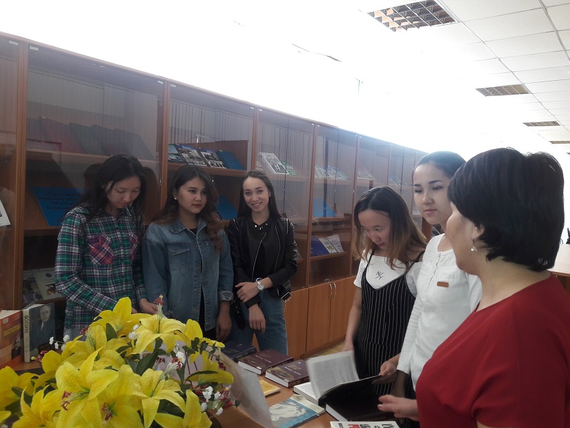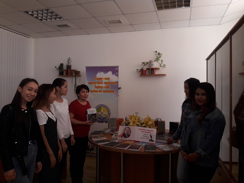 26.09.2017 г. В областной универсальной научной библиотеке имени Г.Сланова организован и предоставлен к вниманию читателей слаид на тему: «Әдебиет әлеміне жол ашқан», посвященный к 120 летию великого казахского писателя Мухтара Ауэзова. В ходе слаида были охвачены книги юбиляра «Қилы заман» (1975), «Өскен өркен», «Кінәмшіл бойжеткен» (1994), «Абайды білмек парыз ойлы жасқа» (1997), «Әңгімелер мен повестері» (1972), также знаменитая трилогия «Путь Абая», охватывающии культуры и традицию народа. В ходе слаида читатели также ознакомились с книгами , описывающими творческий портрет писателя-юбиляра: сборник «Әдебиет туралы» (1997) М.Мырзахметулы «Әуезов және Абай» (1997), А.Молдаханова «Мұхтар Әуезов фольклортанушы» (1997), З.Кабдола «Әуезов» (1997), Е.Кузембаева «Мұхтартану» (2007), К.Сыздыковой «Мұхтар Әуезов – әдебиет сыншысы» (1973), Д.Байкадамовой «Мен білетін Әуезов» (2006), Р.Нургали «Әуезов және алаш» (1997) и другие.