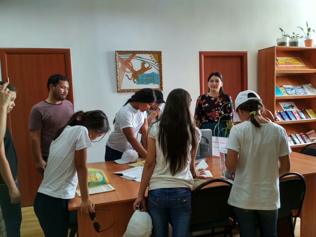 В областной универсальной научной библиотеке имени Г.Сланова проведена экспресс- экскурсия на тему: «Кітап - зерде құралы», с участием учащиеся 7 и 8 классов из Жылыойского, Курмангазинского, Индерского, Махамбетского района в рамках туристическеого и краеведческого похода «Атамекен», организованной Атырауским региональным центром развитии спорта и физической культуры .