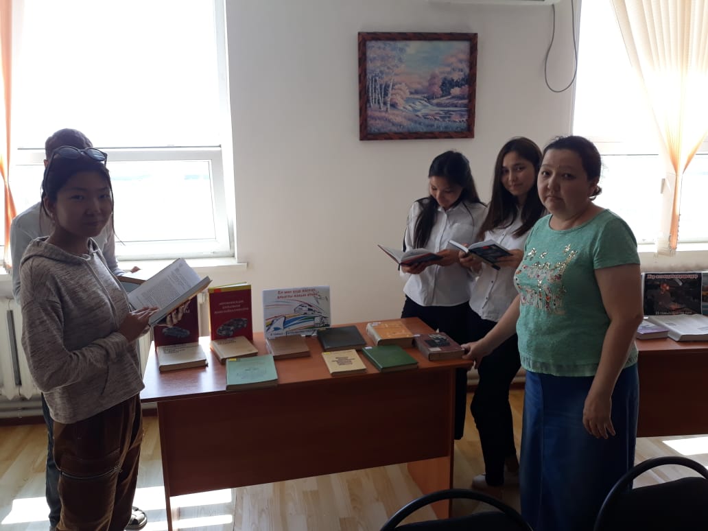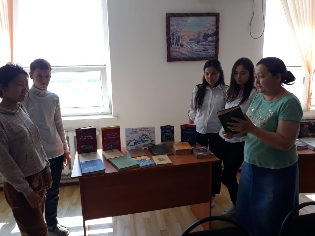 В областной универсальной научной библиотеке имени Г.Сланова организован информационный час по книжной выставке на тему: «Елмен елді жалғап, алысты жақын еткен», посвященная к профессиональному празднику работников транспорта. В ходе мероприятии библиотекарь к вниманию читателей предоставила книги У.Жолдасбекова «Машиналар механизмдерінің теориясы» («Мектеп», 1979), Т.Мендебаева «Машина жасау технологиясы бойынша курстық жобалау» («Мектеп», 1987), также охватывающие о двигателей, о принципах работы, о видах механизмов Д.Серикбаева «Машина детальдары» («Мектеп»,1983), «Автомобильдерді жөндеу техникалық қызмет» (Астана, 2010), П.Жунисбекова «Автомобильдің құрылысы мен және пайдаланылуы» (Астана,2013), А.Ордабаева «Автокөлік құрылымы»(Астана, 2014) и другие.