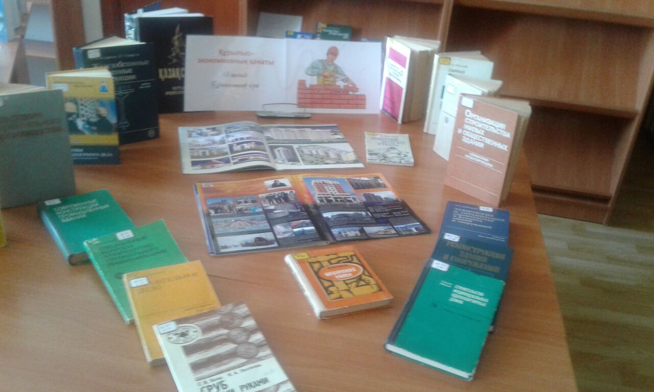 В областной универсальной научной библиотеке имени Г.Сланова организован библиографический обзор по книжной выставке на тему: «Құрылыс – экономиканың қанаты», посвященная к профессиональному празднику строителей.