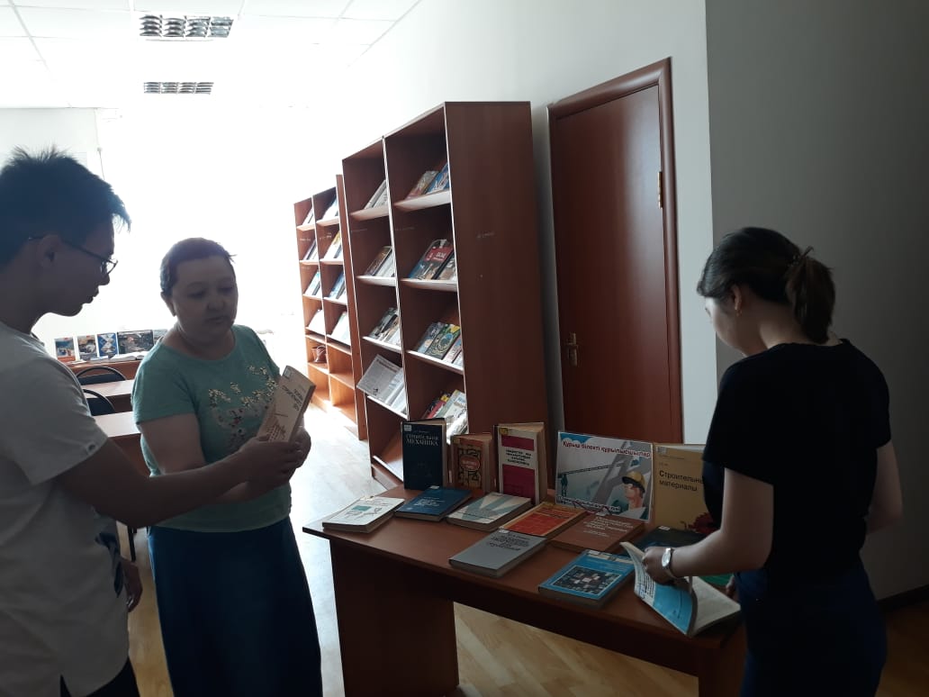 Ғ.Сланов атындағы облыстық ғылыми әмбебап кітапханада 11 тамыз – Құрылысшылардың кәсіби мерекесіне орай «Құрыш білекті құрылысшылар» деген тақырыпта кітап көрмесі жасақталды. Кітап көрмесін таныстыру барысында кітапханашы Бибігүл Қадырқызы оқырмандар назарына қазіргі заманғы ғылыми-техникалық жетістіктер мен құрылыс өндірісінде кешенді механикаландыруға негізделген үймереттер мен ғимараттарды тұрғызудың тәсілдері туралы баяндалған С.Қ.Хамзиннің «Үймереттер мен ғимараттардың құрылыс технологиясы» («Білім», 1994), заттың сыртқы бетін сырлауға дайындау, бояу құрамына кіретін заттарды қосу, әр түрлі материалдан жасалған шатыр жамылғысын сырлау, көркемдеп әрлеу оларды пайдалану мен қауіпсіздік техникасының талаптары туралы айтылған Е.Белоусовтың «Сырлау жұмыстарының технологиясы»(«Мектеп», 1988), жеке үй салушыларға, ағаш шеберлеріне арналған Ә.Оспановтың «Шеберлікке үйрен» («Қайнар»,1976) және орыс тілінде В.Путилиннің «Основы строительного дела», А.Дыховичныйдың «Строительная механика» және т.б. әдебиеттердегі мағлұматтарды әңгімесіне арқау етті.