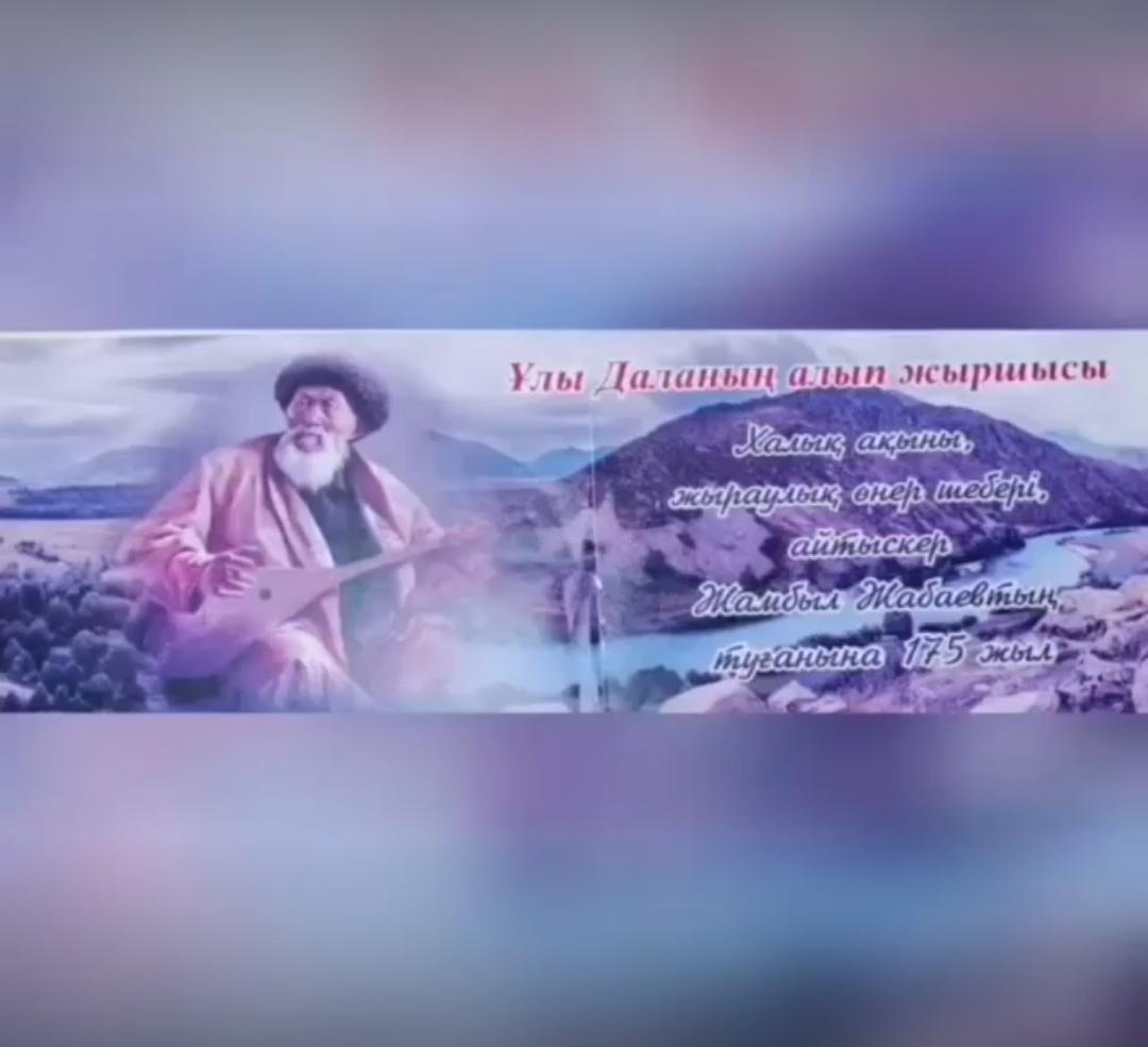 Ғ.Сланов атындағы облыстық ғылыми әмбебап кітапханасында халық ақыны, жыраулық өнер шебері, айтыскер Жамбыл Жабаевтың туғанына 175 жыл толуына орай «Ұлы даланың алып жыршысы» атты кітап көрмесінің таныстырылымы болды. Кітап көрмесіне қойылған әдебиеттерді таныстыру барысында кітапханашы Жамбылдың «Шәкірт балаларға» 1950ж, «Жамбыл Жабаев» 1955 ж, «Жамбыл Жабаев»1971ж, «Өлеңдер, айтыстар, дастандар»1989 ж, «Жамбыл» таңдамалы 1,2 том 1996 ж, «Ел қадірін біл, балам» 1996 ж, «Туған елім»2006 ж, «Халық - менің шын атым» 2008 ж., «Джамбул Джабаев»1980, «Моя родина» 1986, «Джамбул» избранное 1986, «Я тополь столетний» 1996, «Джамбул Джабаев» 1996, «Жамбыл Жабаев» 2010, Н.Смирнова,Ш.Сатпаева, Х.Адибаев: Казахская литература» (1980) тағы басқа әдебиеттерді оқуға ұсынды. Сондай-ақ, ақынның өмірі мен шығармашылығы жайлы «Пернедегі термелер»1965, «Дастан ата»1989, «Жамбыл менің жай атым»1996, «Қазақ өнерінің антологиясы»2том.2014, Ж.Шаштайұлы «Жыр жолбарыс»1996, М.Жармұқамедов «Сарбаз поэзия»1981,М.Жолдасбеков «Асыл арналар»1986, «Кісілік кітабы» 3том 2002, Ғ.Есім «Тұлғалар-қаламгерлер»2012, «Жүз тұңғыш»2005, «Қазақтың 100 поэмасы»2013, «Жыр маржаны»2014 т.б. кітаптарды таныстырды.
