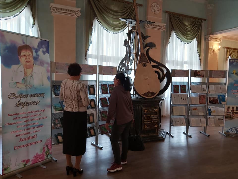 Работники Областной универсальной научной библиотеки имени Г.Сланова к 70 летнему юбилею поэтессы, кавалера ордена «Парасат» и премии «Алаш» Ханбиби Есенкаракызы оформила книжную выставку на тему: «Өмірге ғашық жүрекпен» и предоставили к вниманию зрителей творческого вечера на тему:«Қара сөздің Хан - Бибісі», проведенной в Дворце имени Курмангазы. Библиотекарь к вниманию читателей предложила книгу Н.Бегалыулы «Хан қызындай Ханбибі» (2003), описывающую о творчестве и о деятельности поэтессы. Также в своем рассказе охватила о поэтических сборниках поэтессы: «Бұлтсыз аспан» (1978), «Жангүлім» (1989), сборник сочинении в 10-ти томах «Ханбибі Есенқарақызы» (2018), сборник трудов деятелей движении Алаш «Ақ жол» (2015), «Шолпан (2015), «Жыр кітабы», «Сыр кітабы» и другие.