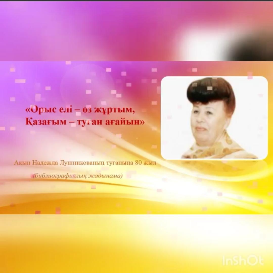 Ғ.Сланов атындағы Атырау облыстық ғылыми әмбебап кітапханасы айтыс ақыны Надежда Лушникованың туғанына 80 жыл толуына орай «Орыс елі – өз жұртым, Қазағым туған – ағайын» атты библиографиялық жадынаманы оқырмандар назарына ұсынады.