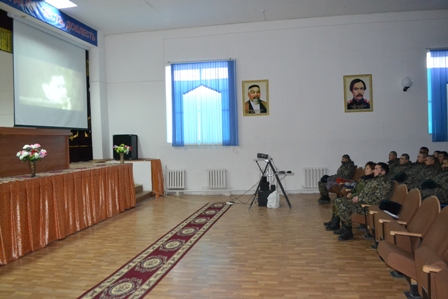 В ходе мероприятии библиотекарь Ж.Байымбетова к вниманию солдатов предоставила биографию легендарного героя, также видеоролик который охватывает голос Б.Момышулы. В конце вечера библиотекарь Г.Карабалиева через слаид шоу ознакомила солдатов с литературой,также статьи из периодических изданиио жизненном пути, с книгами расказывающий о гражданском и геройческом образе писателя во время Великкой Отечественной войны,. .