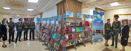 Көрмеге Б.Смағұлдың «Қаһарман», «Қазақтың қара майоры», «Қаһарман Бауыржан Момышұлы» Қ.Аманжоловтың «Қазақстанның әскери тарихы», А.Тасболатовтың «Жоғарғы бас қолбасшы – әскери қауіпсіздік кепілі», «Саптық әмірлер. Рапорттар. Әскерилердің қарым-қатынас сөздері. Строевые команды. Рапорты и обращения между военнослужащими» кітаптары мен мерзімді басылымдар «Тәуелсіздіктің ақтаңы», «Бүркіт», «Қазақстан патриоты» және т.б ұсынылды.