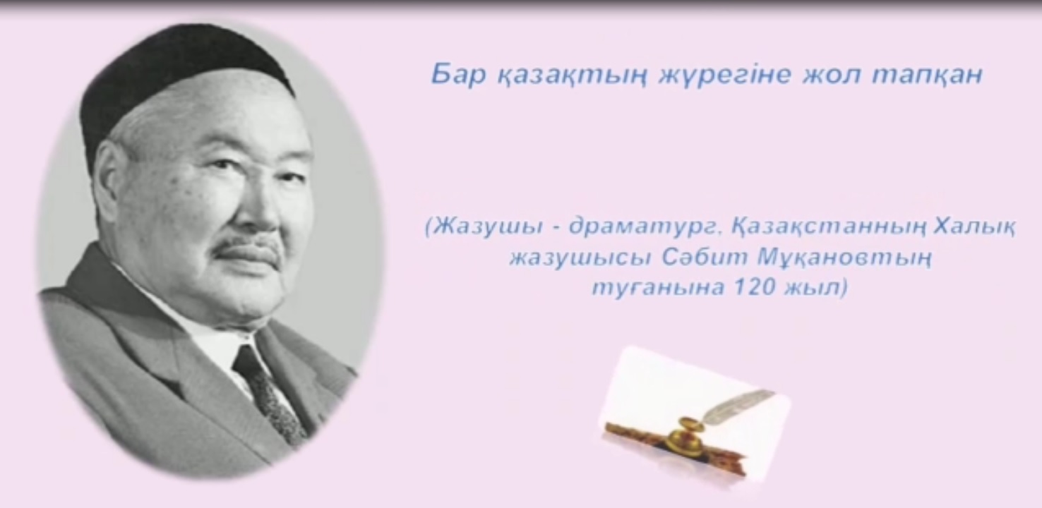 Жазушы, драматург, Қазақстанның халық жазушысы С.Мұқановтың туғанына 120 жыл толуына орай «Бар қазақтың жүрегіне жол тапқан» деген тақырыппен шығармаларына әдеби шолуды оқырмандар назарына ұсынды. Шолу барысында жазушы шығармаларының бейнетаныстырылымы слаид- шеру ретінде ұсынылып, әр шығармасы туралы толыққанды мағлұмат берілді.