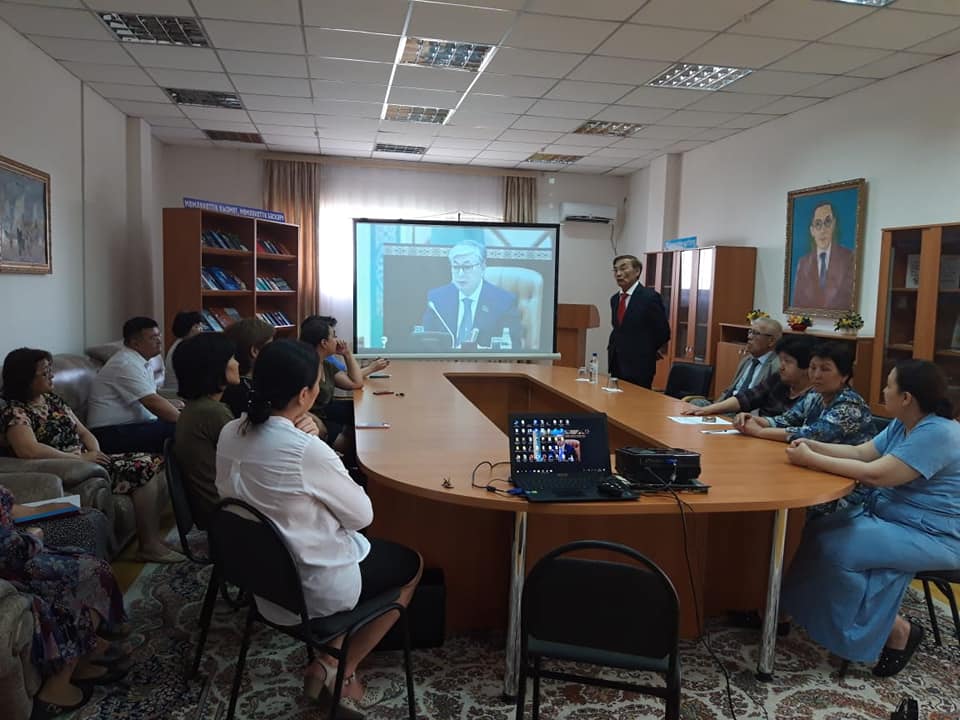 Первый заместитель председателя центрального совета Республиканского общественного объединения Организация ветеранов Республики Казахстан Омирзак Озганбаев и заместитель председателя Атырауского областного Совета ветеранов, отличник культуры РК, ветеран культуры Серик Мухамбетов среди библиотечных работников Областной универсальной научной библиотеки имени Г.Сланова провели разъяснительную беседу о предвыборном платформе Касым-Жомарта Кемелулы Токаева.