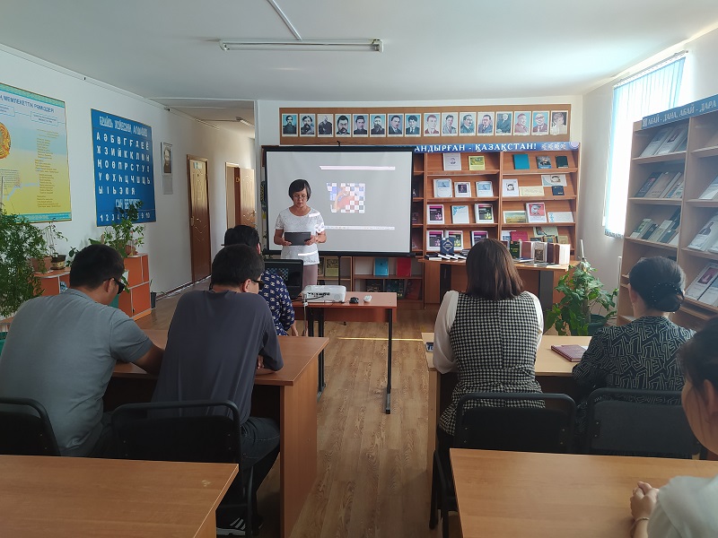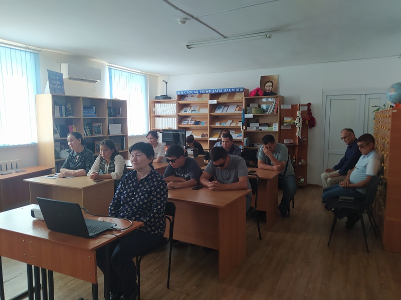 Биография выдающегося казахского писателя Акима Тарази была зачитана незрячим читателям. Незрячие читатели поделились мыслями, вспомнив краткое содержание фильмов, которые они смотрели, и прочитанных произведений.
