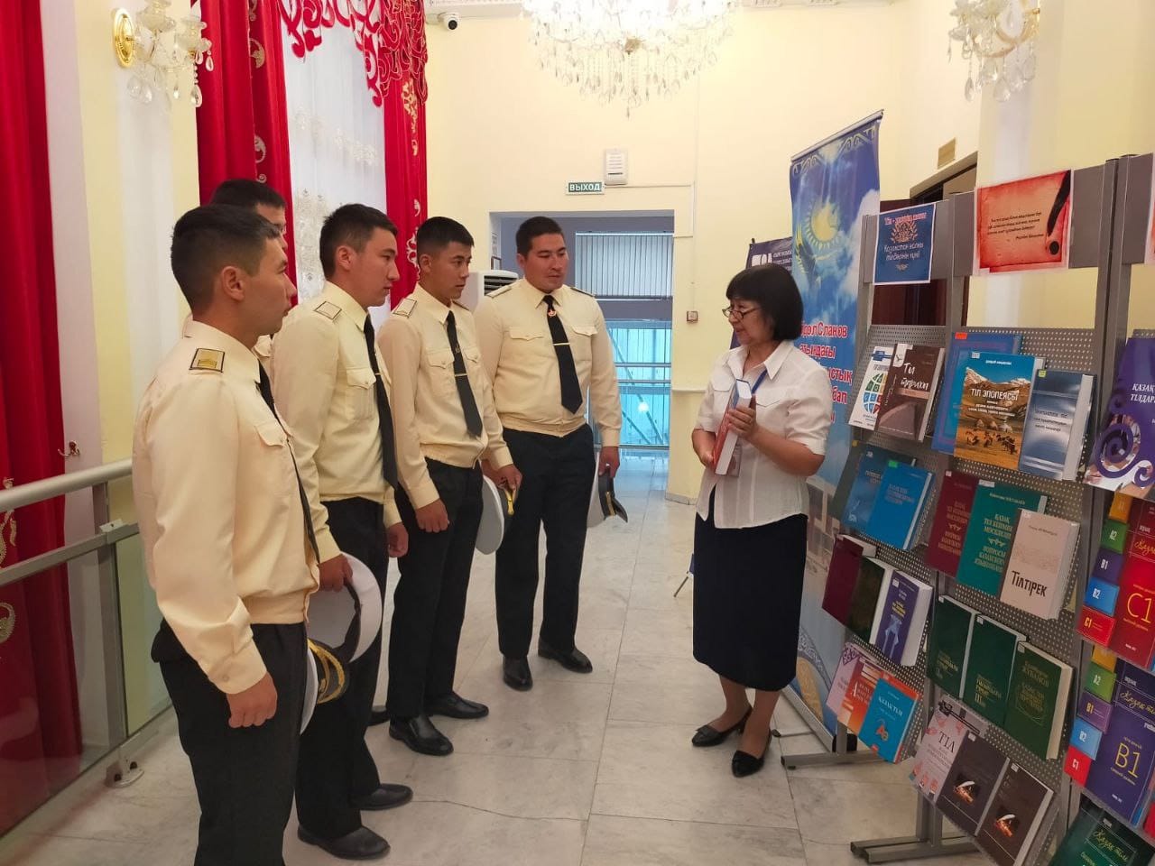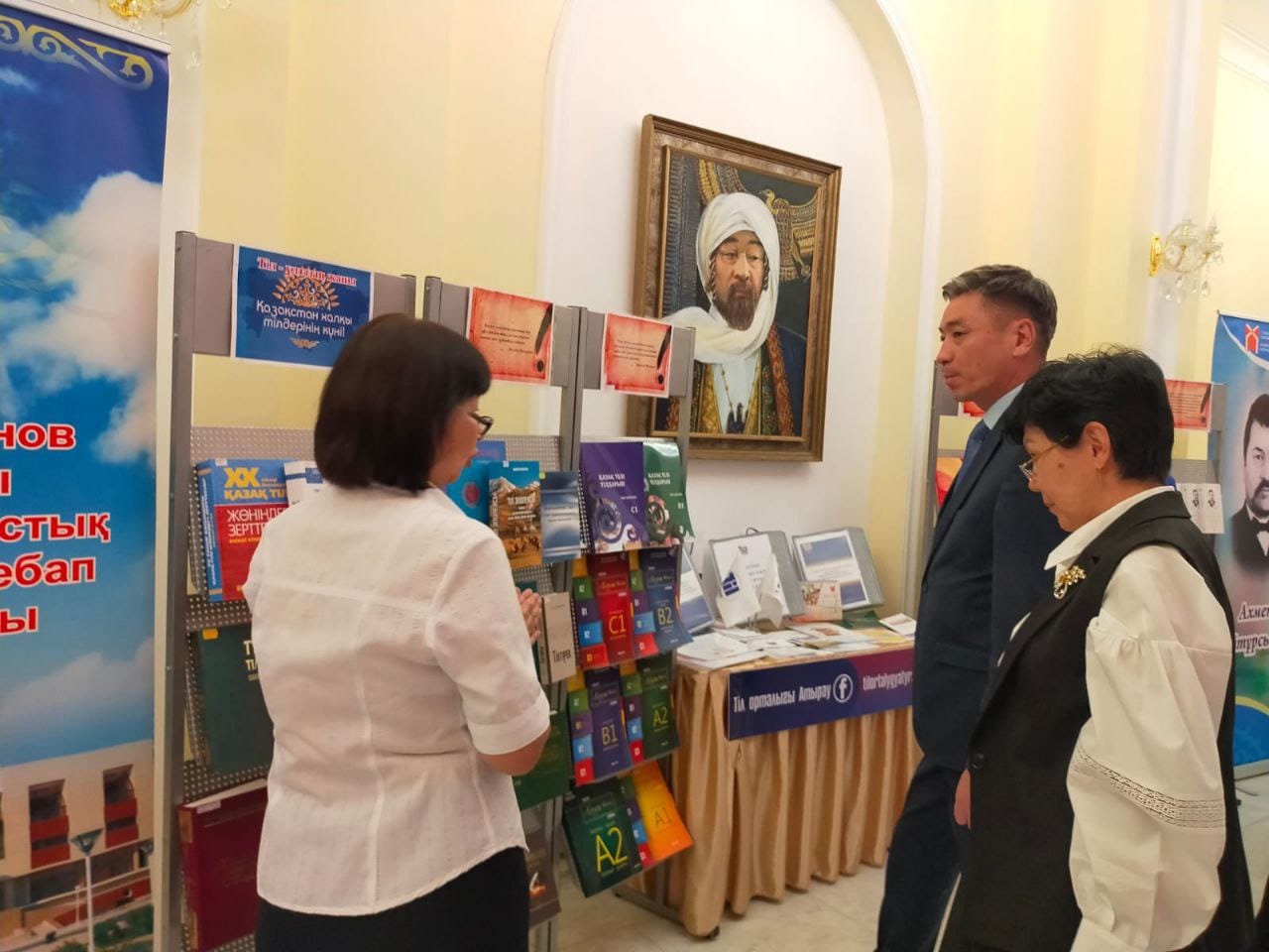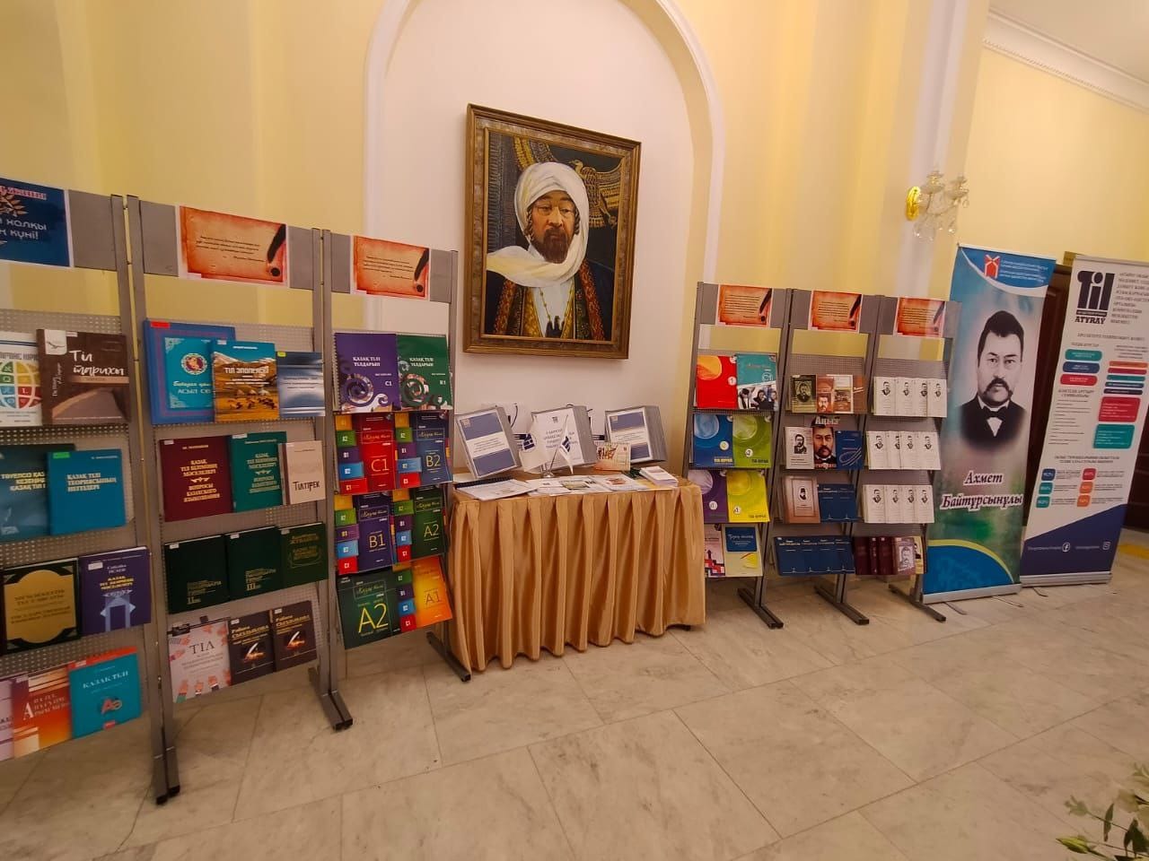 В ходе мероприятия библиотекарь Галия Салимжанкызы ознакомила гостей с литературой, представленной на книжной выставке «Тіл – ұлттың жаны», предоставив информацию по истории языка.