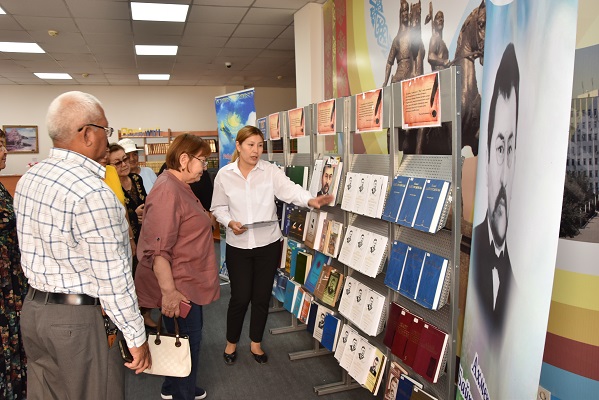 Көрмеге кітапхана қорындағы түркі тілдер, әлемдік тілдер тарихын зерттеуге, қазақ тіл біліміне, тіл мәселелеріне, тілдерді үйрену, оқытуға арналған ғылыми әдебиеттер қойылды.