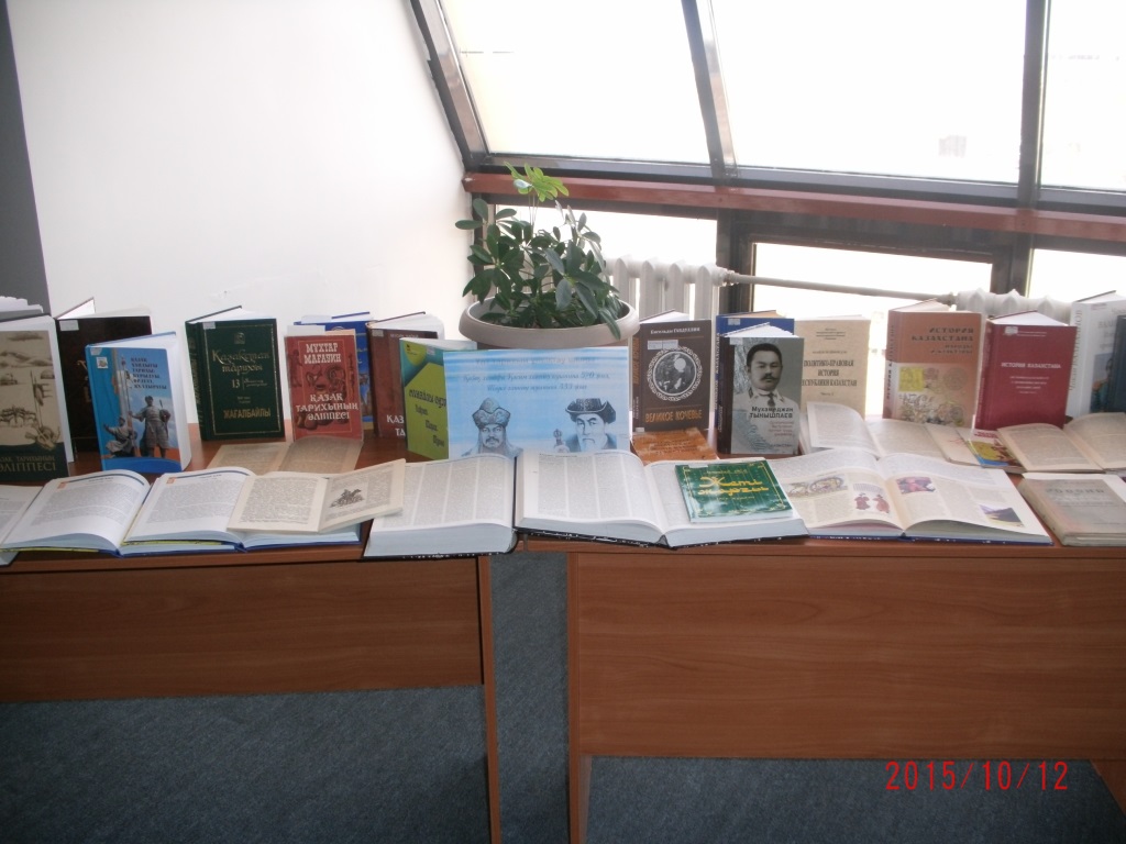 В областной универсальной научной библиотеке имени Г.Сланова оформлена книжная выставка на тему: «Ұлт тарихын ұлықтау шыңы», посвященная к 570 летию Касым хана и к 335 летию Тауке хана.