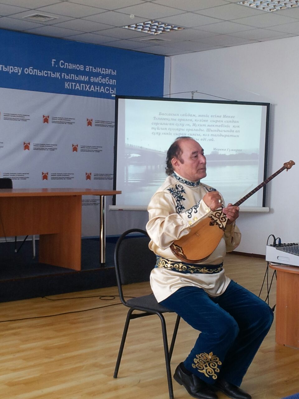 Заместитель руководителя областной универсальной научной библиотеки имени Г.Сланова М.Л.Даулеткалиева выразила благодарность гостям мероприятии за интересных душевных рассказов о певца, подарила книг как память данного вечера.
