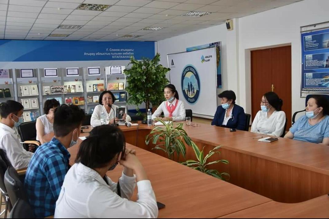 Шараға тарих ғылымдарының докторы, профессор, Х.Досмұхамедов атындағы Атырау университеті Қазақстан Халқы Ассамблеясы Институтының директоры Кыдыралина Жанна Уркинбаевна «Zoom» платформасы арқылы тікелей байланысқа шығып, қазақ халқының тарихындағы қасіретті кезең жайлы және сол кезеңдегі солақай саясаттың құрбаны болған қазақ зиялылары туралы толық мәлімет берді. Кітапхана оқырмандарымен тікелей байланысқа шығып, қуғын-сүргін құрбандарын және ашаршылық жылдарын еске алу күніне байланысты көптеген мағлұматтарды әңгімесіне арқау етті. Сондай-ақ, қосымша сұрақтарға да нақты жауап беру барысында ел үшін құрбан болған Алаш арыстары туралы айтты.