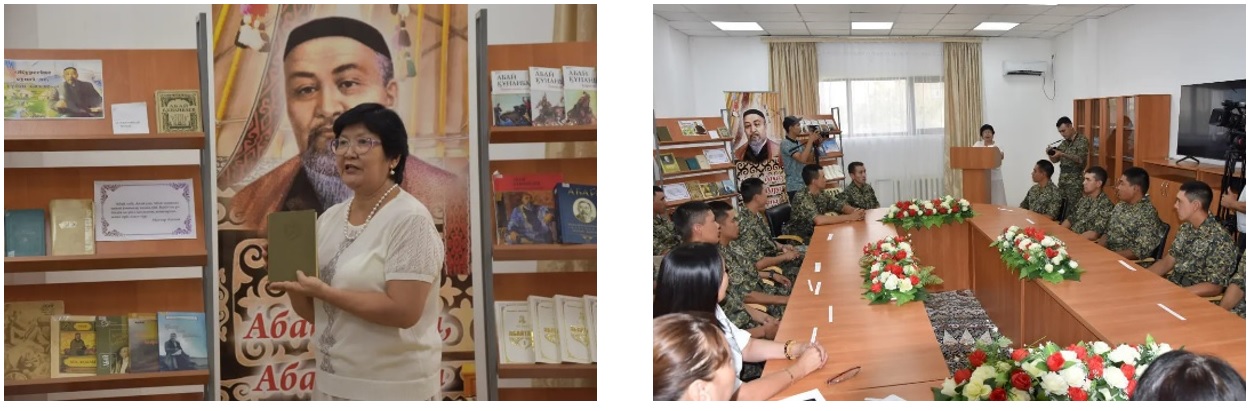 Шара барысында қазақ халқының ұлы ақыны, ғұлама-ойшылы, композиторы, аудармашы Абай Құнанбаевтың туған күніне орай «Абай – дана, Абай – дара қазақта» атты кітап көрмесі жасақталып, оқырмандар назарына ұсынылды. Көрмені кітапханашы Бике Карипқызы таныстырды. Ол Ұлы Абайдың 1966-жылы Мәскеуде жарық көрген кітабынан бастап, қазіргі уақытқа дейінгі кітаптары туралы ақпарат берді. Жазушы Роллан Сейсенбаевтың қолдауымен 2019-жылы «Халықаралық Абай клубы» баспасынан жарыққа шыққан 10 томдық шығармалар жинағын таныстырды.