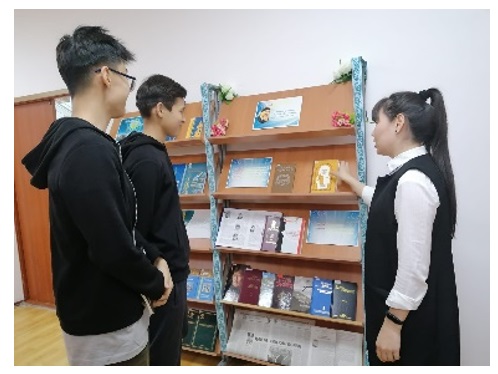 Кітап көрмесіне Садықбек Адамбековтің «Атылған қыз туралы аңыз» 1982 ж., «Қожанасыр қақпасы» 1989 ж., Автордың өмірі мен шығармашылығы жайлы: Ж.Алтайбаев – шығармалар жинағы 2011 ж., З.Қабдолов – шығармалар жинағы 2014 ж., М.Ысқақ – «Көңіл күнделігі» 2015ж., К.Әмірбек – «Сөйле десең, сөйлейін» 2015 ж., Т.Орманов – «Ертегі өмір» 2016 ж., Ғ.Ахметчин – «Күндіз жұлдыз көрінсе» 2016 ж., Ж.Әбдіраш «Құлпытас» 2017 ж., М.Рәш «Жадымда қалған жайсаңдар» 2020 ж., шығармалары оқырмандар назарына ұсынылды.