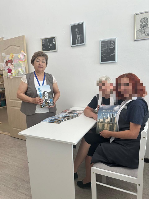 "Кітаппен өткен жаз қызық" жаздық оқу іс-шараларының жоспарына сәйкес, 6 шілде Астана күніне орай кітапхана қызметкерлері Атырау облысы бойынша ҚАЖ департаментінің №79 мекемесінде болып, «Астана - ел мақтанышы» тақырыбында ақпараттық сағат өткізді.