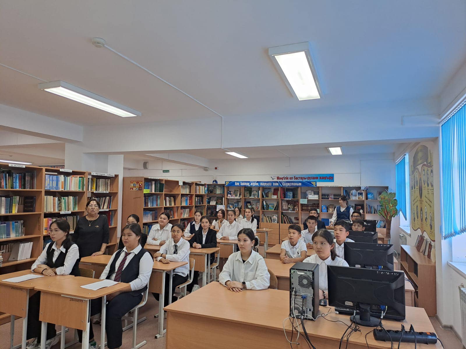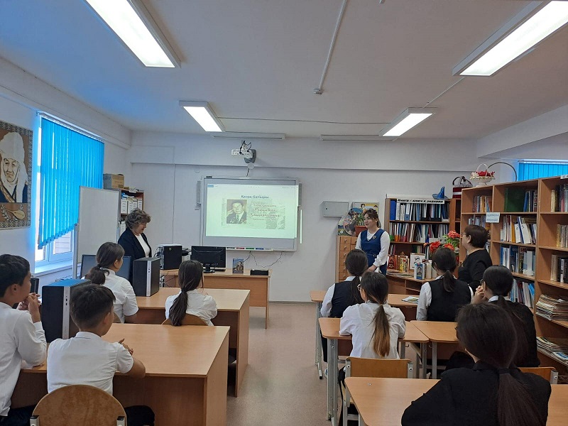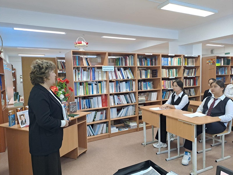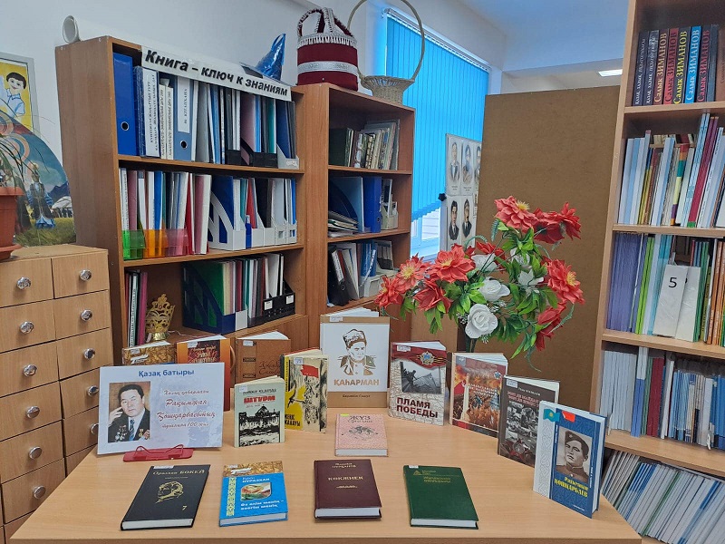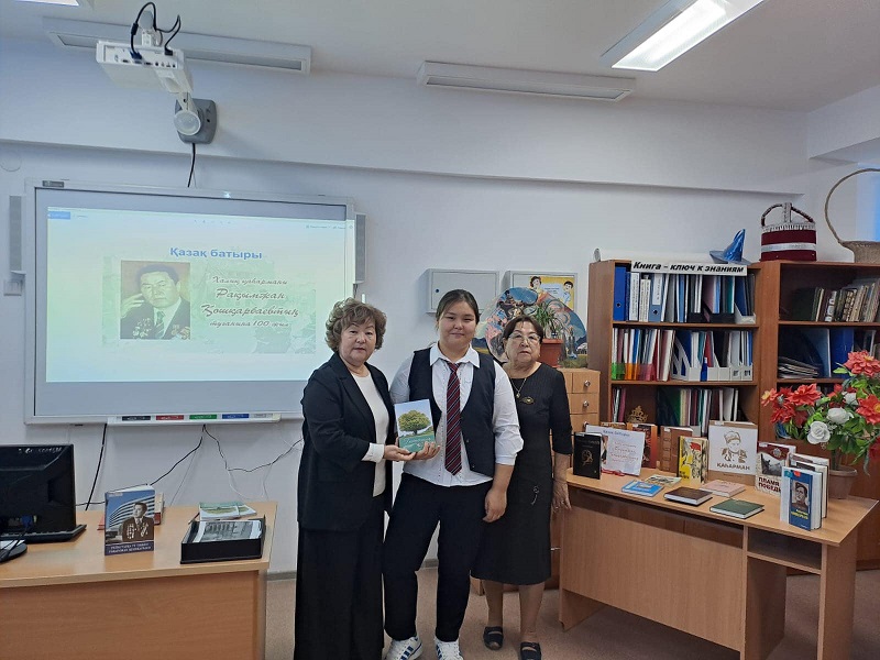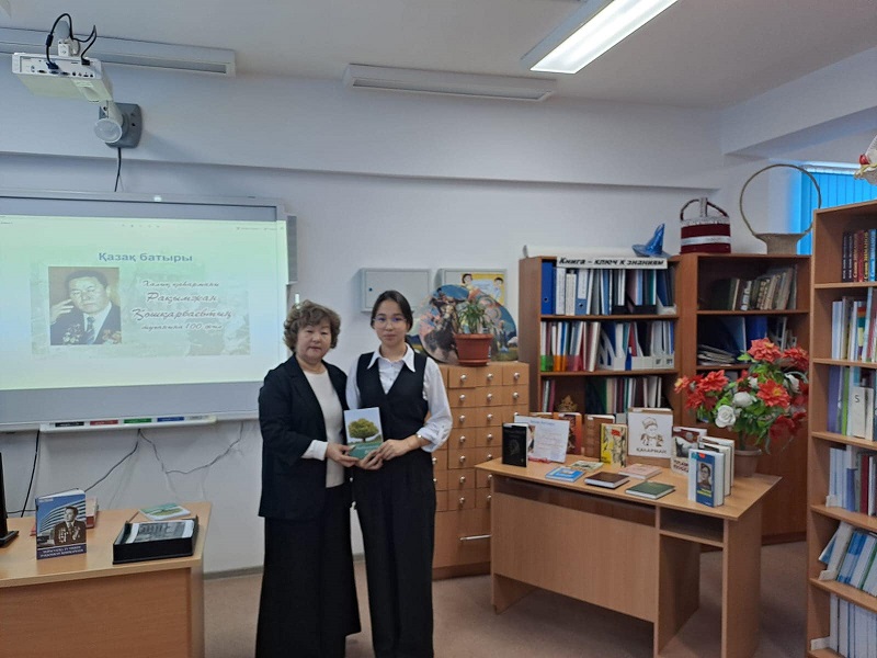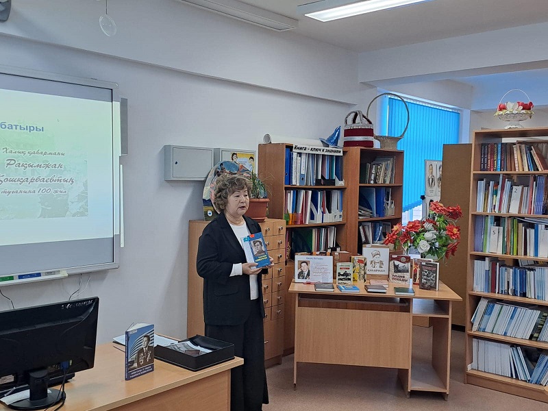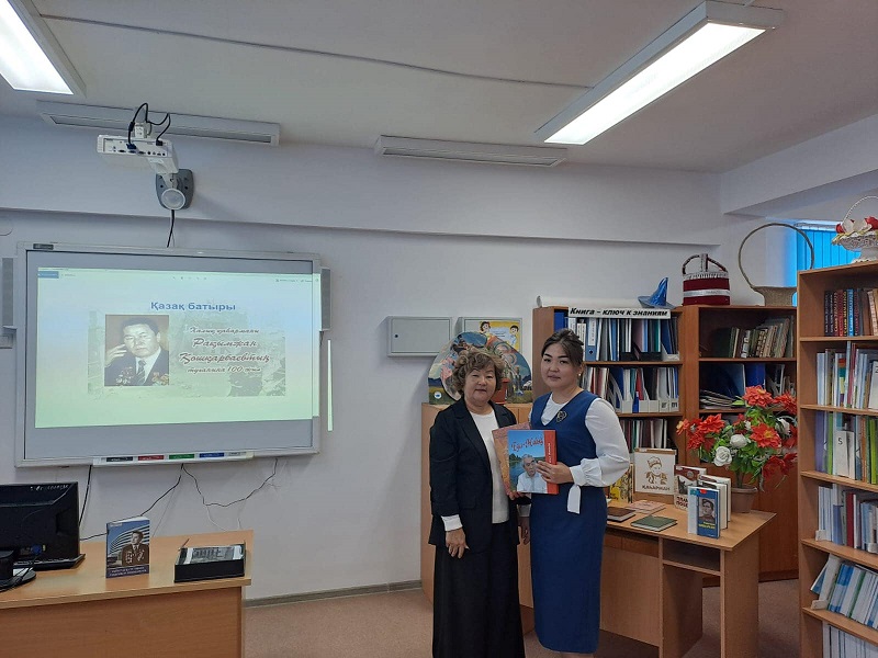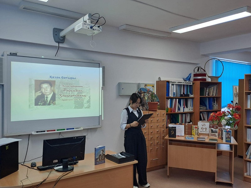 №38 мектеп-лицейінде Ғ.Сланов атындағы облыстық ғылыми әмбебап кітапхананың ұйымдастыруымен Халық қаһарманы Рақымжан Қошқарбаевтың туғанына 100 жыл толуына орай «Қазақ батыры» атты ақпараттық танымдық сағат өтті.
