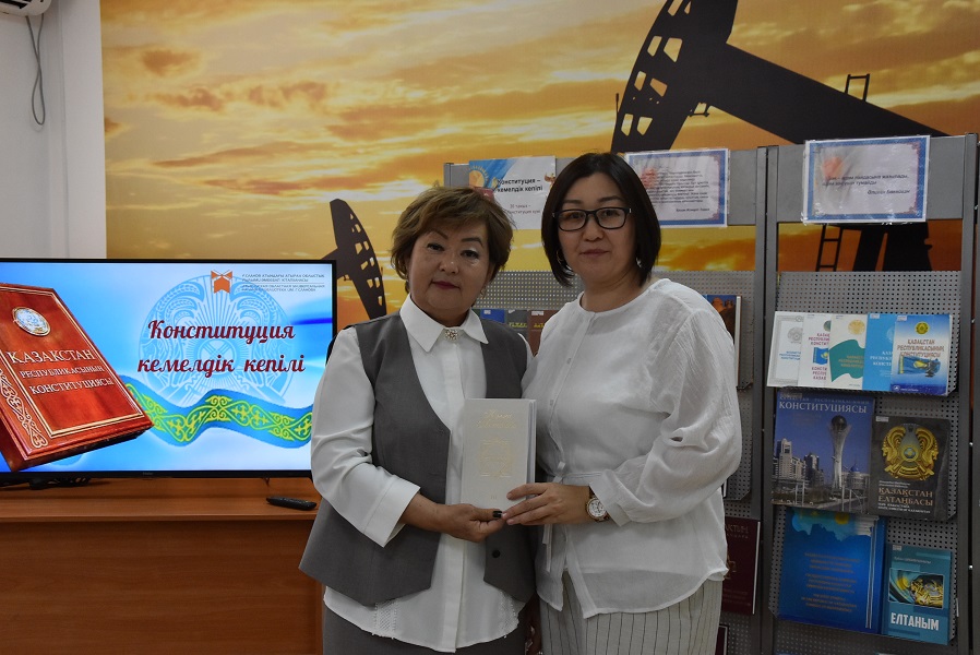 «Кітаппен өткен жаз қызық» жаздық оқу іс-шара жоспары аясында Ғ.Сланов атындағы облыстық ғылыми әмбебап кітапханасында 30 тамыз - Конституция күніне орай «Конституция – кемелдік кепілі» тақырыбында тарихи-танымдық сағат өтті. Шараға қалалық жұмыспен қамту және әлеуметтік бағдарламалар бөлімінің мемлекеттік тапсырысы бойынша мүгедектігі бар адамдарға арналған «Тең қоғам» әлеуметтік жобасының мүшелері қатысты.