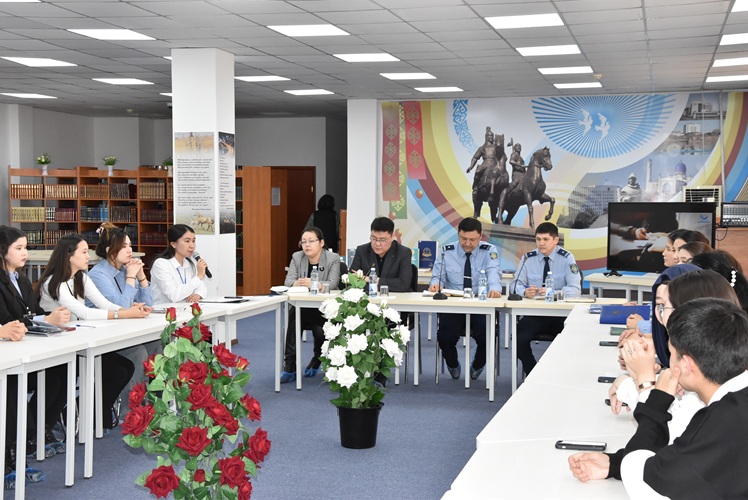 Шара барысында жастар арасындағы құқық бұзушылық, интернеттегі алаяқтық, нашақорлық, тұрмыстық зорлық-зомбылық, буллинг туралы ақпараттар айтылып, бейнеролик көрсетіліп, кітап көрмесі таныстырылды.