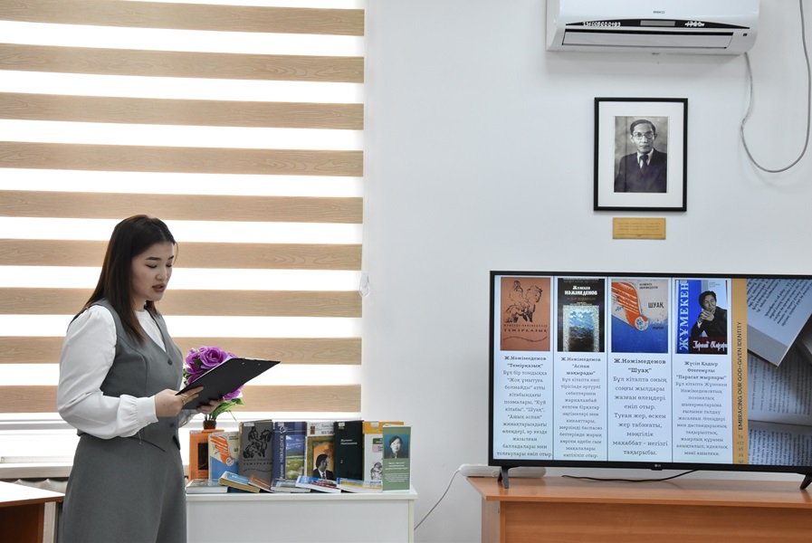 Кітапхананың жас маманы Нұрмұханова Ақмарал кітап көрмесімен таныстырып, ақынның қазақ халқының ұлттық рухын, туған жерге деген сүйіспеншілігін паш ететін «Менің Қазақстаным» әнінің шығу тарихына тоқталып, терең ой мен ұлттық сезімге толы гимнді бірге шырқаумен шара өз мәресіне жетті.