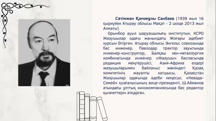 Жазушы, драматург, публицист, аудармашы, актер Сәтімжан Санбаевтың туғанына 85 жылдығына орай «Сан қырлы жан» атты слайд шоуды оқырмандар назарына ұсынамыз.