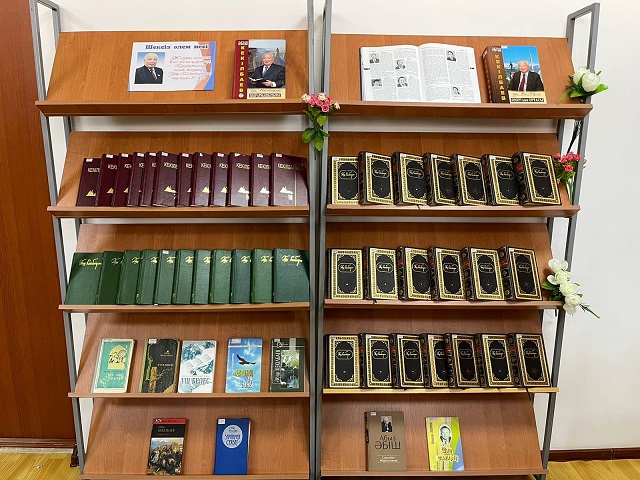 Әдебиеттің барлық жанрларында қалам тербеген, кемел суреткерлігімен, кенен ойшылдығымен, дана көсемдігімен, дара шешендігімен баршаны қайран қалдырған, халқының ықыласына бөленген тамаша талант иесі, мемлекет және қоғам қайраткері, Қазақстанның халық жазушысы Әбіш Кекілбаевтың туғанына 85 жыл толуына орай «Шексіз әлем иесі» тақырыбымен кітап көрмесі ұйымдастырылып, оқырмандар назарына ұсынылды.