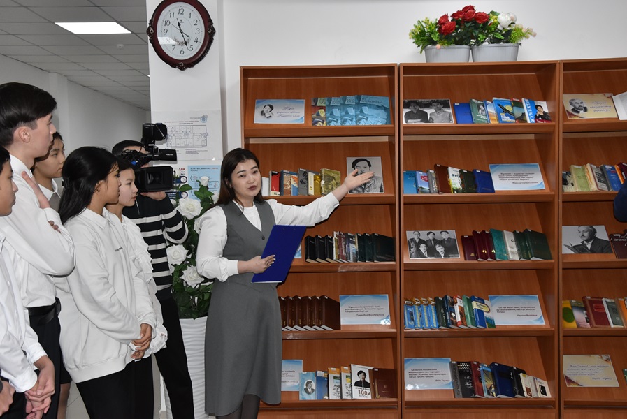 Поэзия жанры бойынша мемлекеттік сыйлықтың иегері, көрнекті ақын, биыл 90 жылдық мерейтойы аталып өткелі отырған Жұмекен Нәжімеденов шығармалары мен проза жанры бойынша ұлтымыздың көрнекті жазушысы, ақын, сыншы, аудармашы, суреткер Тәкен Әлімқұлов шығармаларын оқу ұсынылып отыр. Қазақтың рухани әлемін байытқан жазушылардың өмірі мен шығармашылығы жайлы әдебиеттер кітап көрмесінен орын алды.