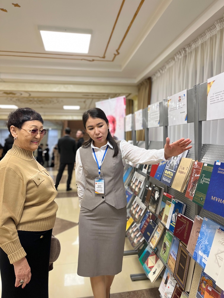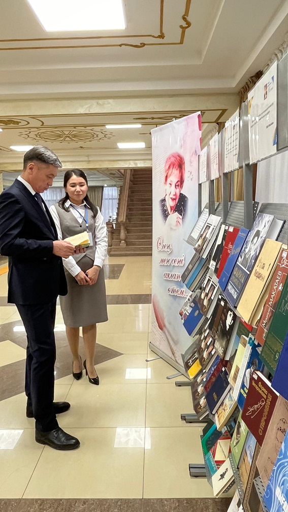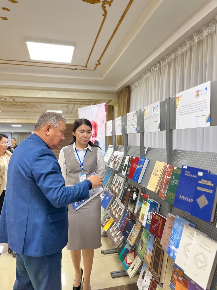 В мероприятии, организованном в Академическом Казахском драматическом театре им. Махамбета областная научная универсальная библиотека им. Г. Сланова представила вниманию зрителей книжную выставку «Өлең, мен сені аялап өтем...». На выставке были представлены произведения поэта и литературы о Фаризе Онгарсыновой.